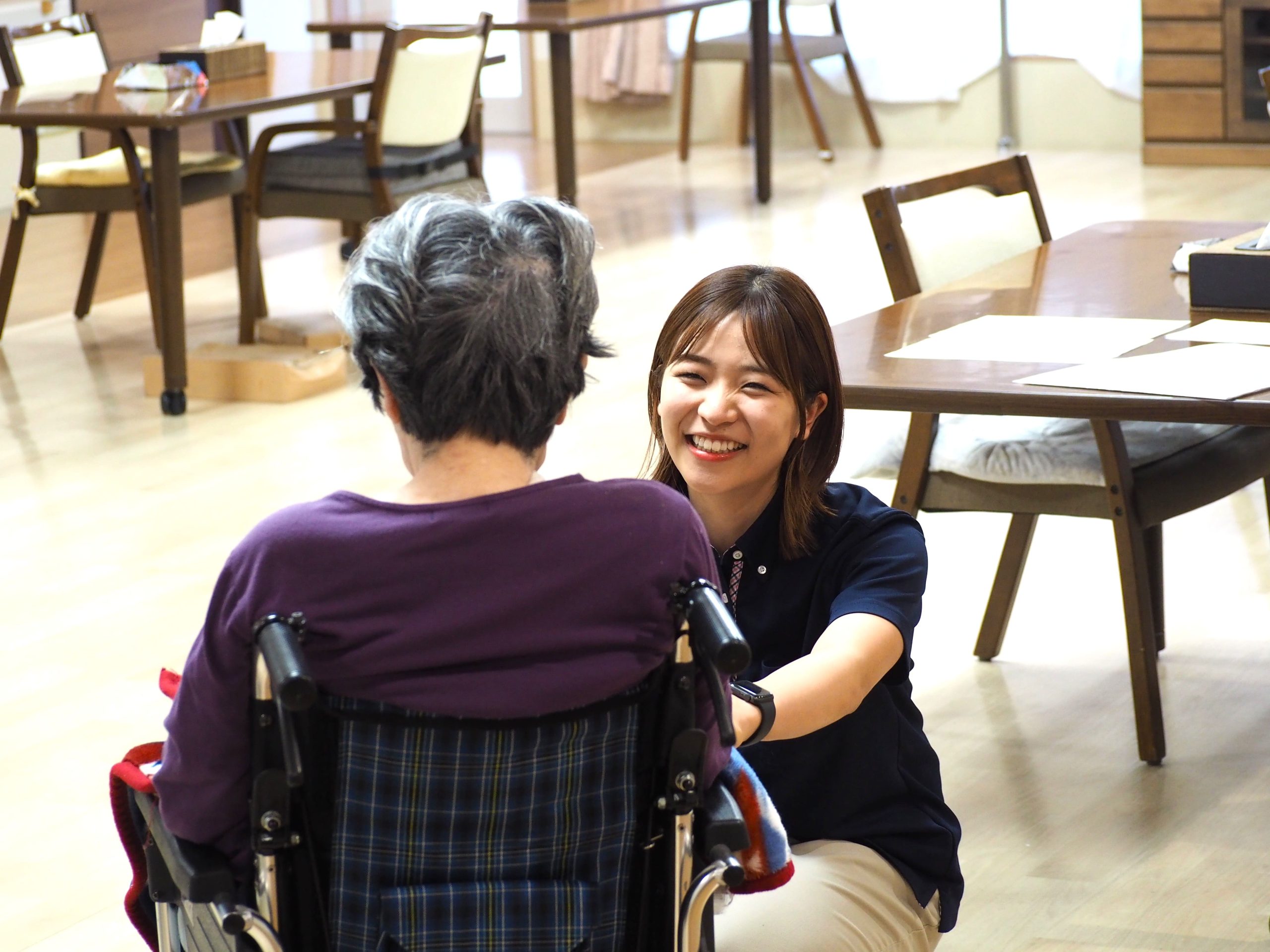 日々の業務の中で、ご入居者様との何気ない会話や「ありがとう」という言葉が、私にとって大きな励みとなりました。そうした経験を重ねるうちに、次第に介護の仕事に楽しさを見出せるようになっていったのです。